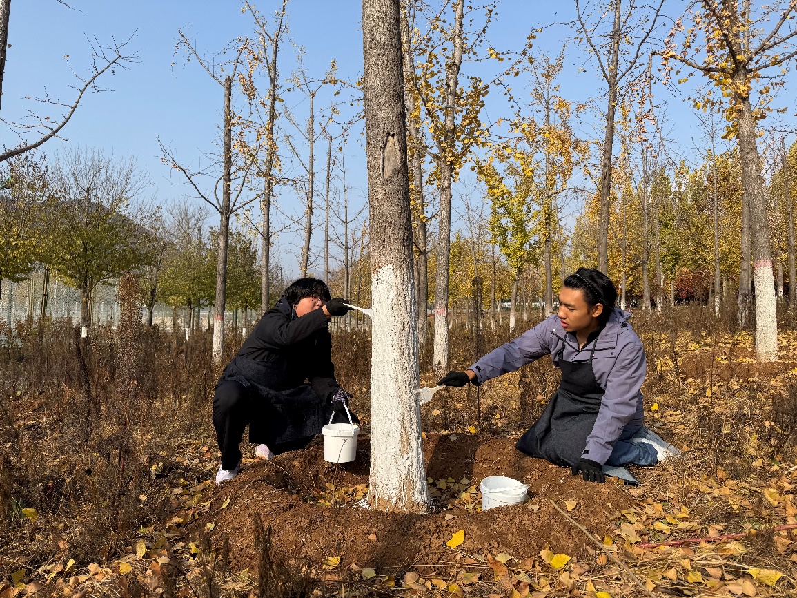 立冬到 树木新:玉泉书院组织开展“大树刷白”劳动实践活动